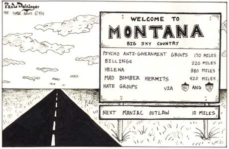 This cartoon was done during a time when alot of info about Montana and it's hate groups were being publisized.