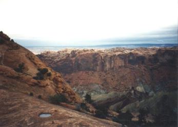 A monsterous hole with a 1500 foot drop is what visitors see at "Upheaval Dome" in Canyonlands National Park.